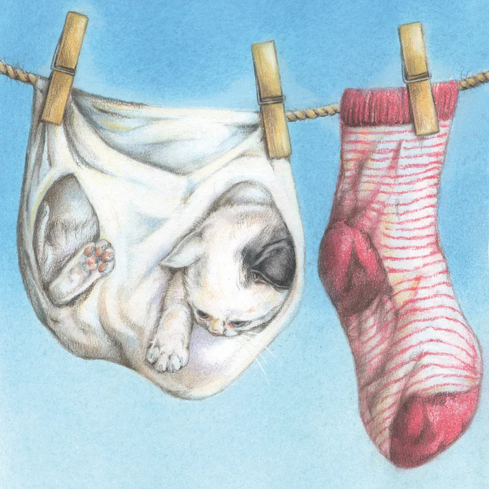 We don´t hang the dirty laundry outside, our kitten does